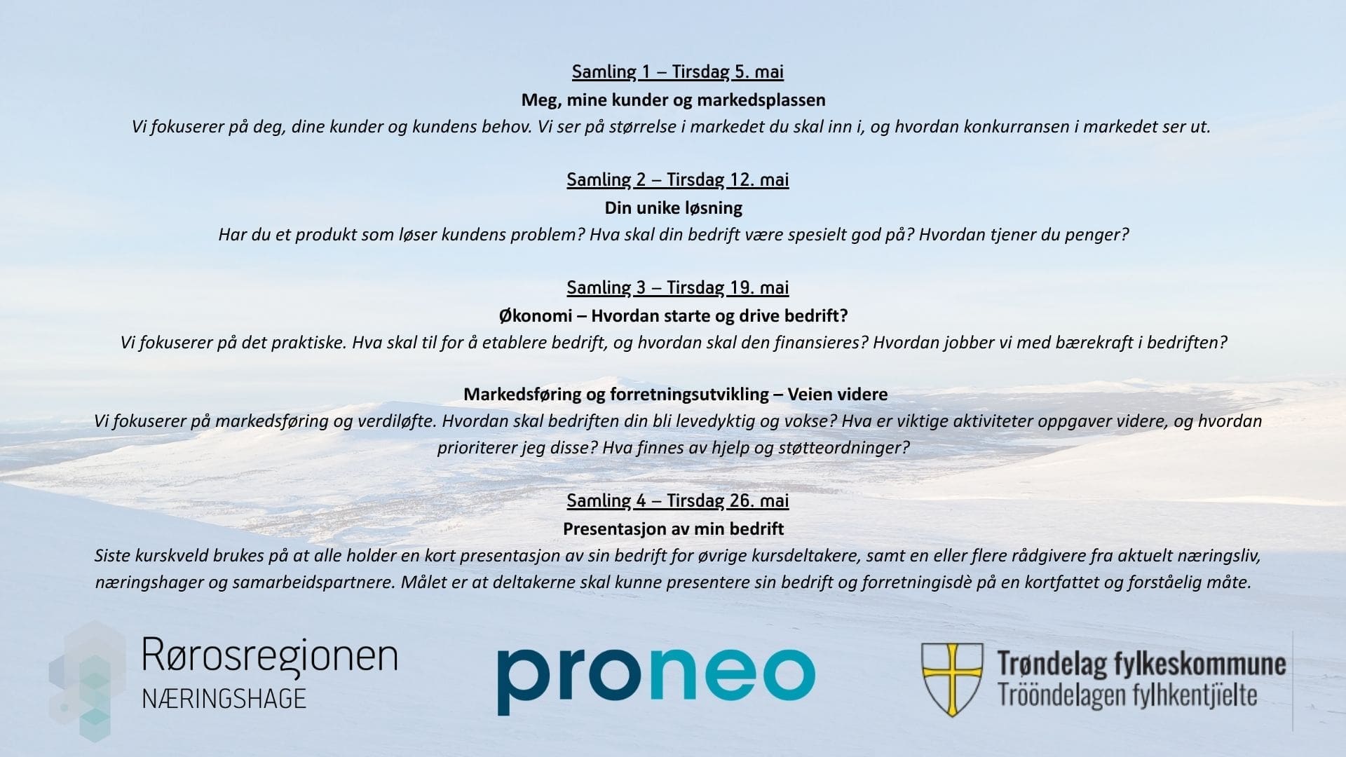 Kurset er en del av Etablereropplæringen i Trøndelag, og er et samarbeid mellom Proneo og Trøndelag Fylkeskommune.